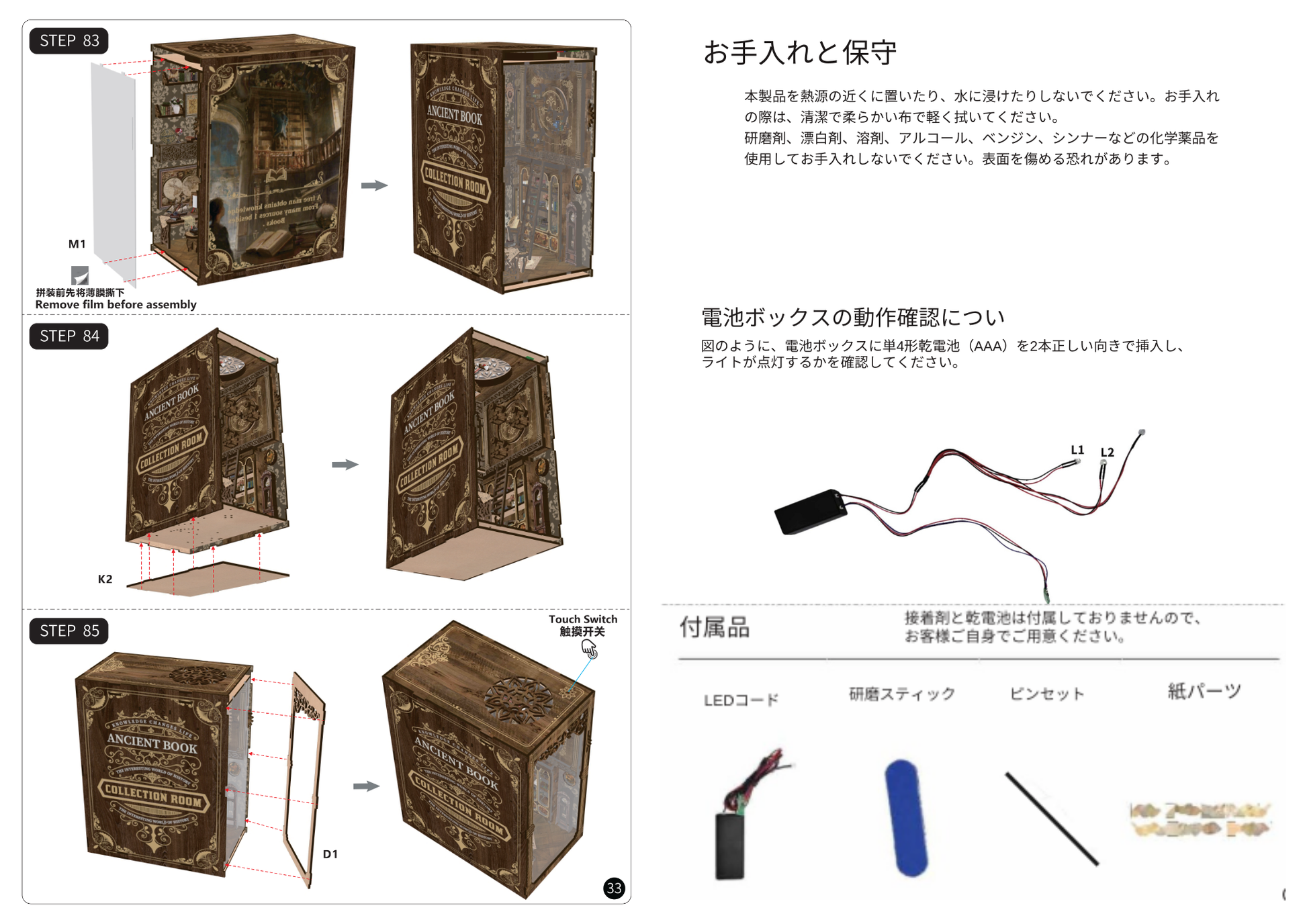 組み立て説明書付きで、初心者でも手順に従って作成が可能です。制作を通じて集中力を発揮しながら、ものづくりの達成感を味わえます。 -